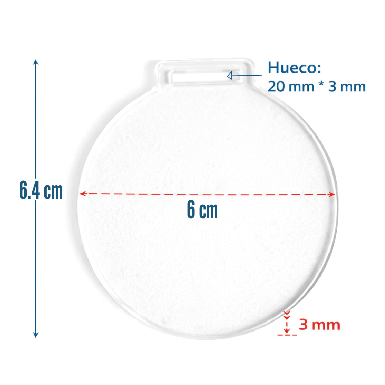 Listas para personalizarlas. En ACRILICO TRANSPARENTE de 3 mm de grosor. Medida hueco: 20 mm * 3 mm